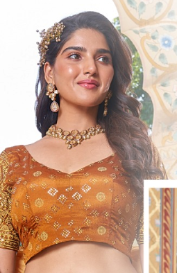| Schal: | Chiffon, alle vier Seiten mit einer Brokatborte verziert, Masse: 240 x 110 cm | |