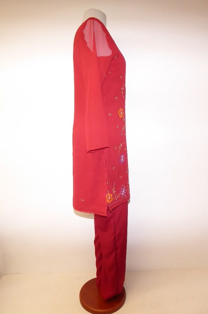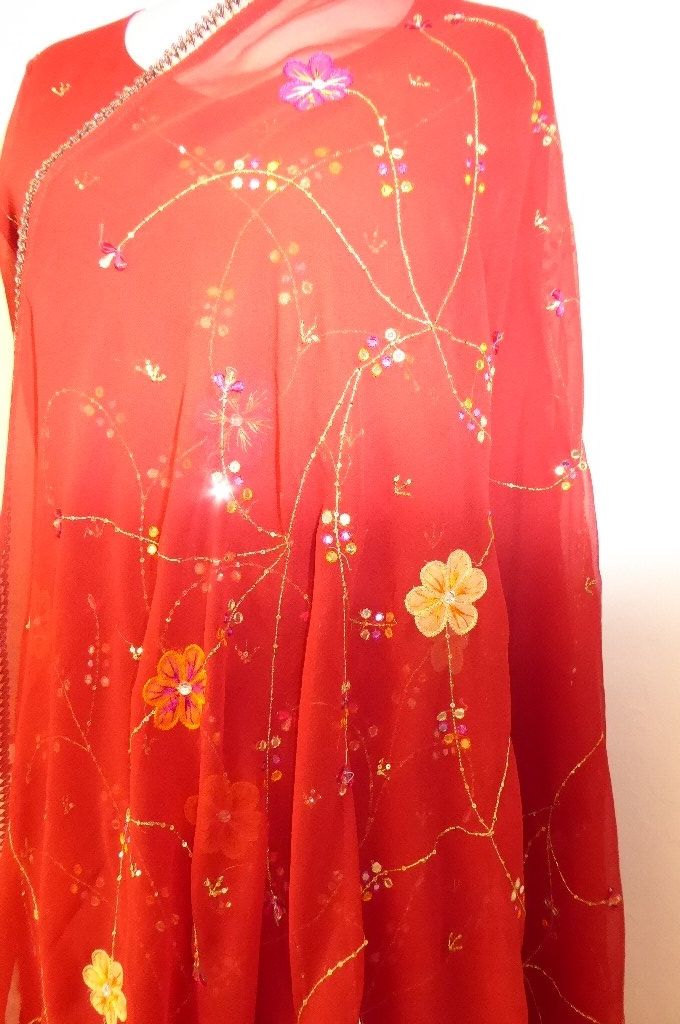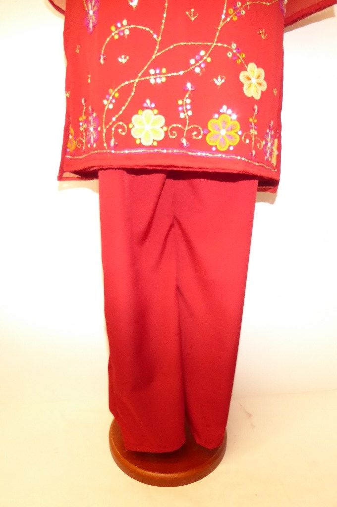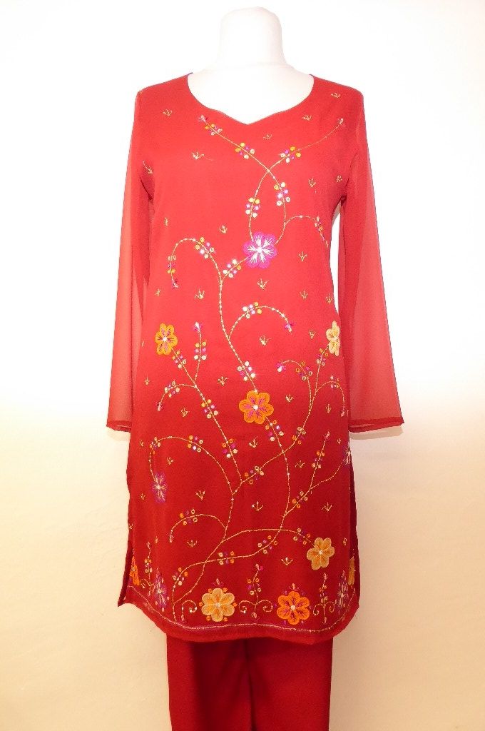 Salwar Kameez 3-teilig Georgette rot mit Pailletten - M