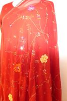 Oberteil:vorn aufwändig mit Glanzgarn, Spiegeln, Applikationen und Pailletten bestickt, weicher V-Ausschnitt, leicht ausgestellt, Seitenschlitze, gefüttert, Länge: 93 cm, lange  Ärmel, ungefüttert Länge 56 cm