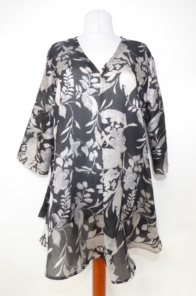 Seidentunika 'Abheeti' schwarz-silbergrau - L-XXL