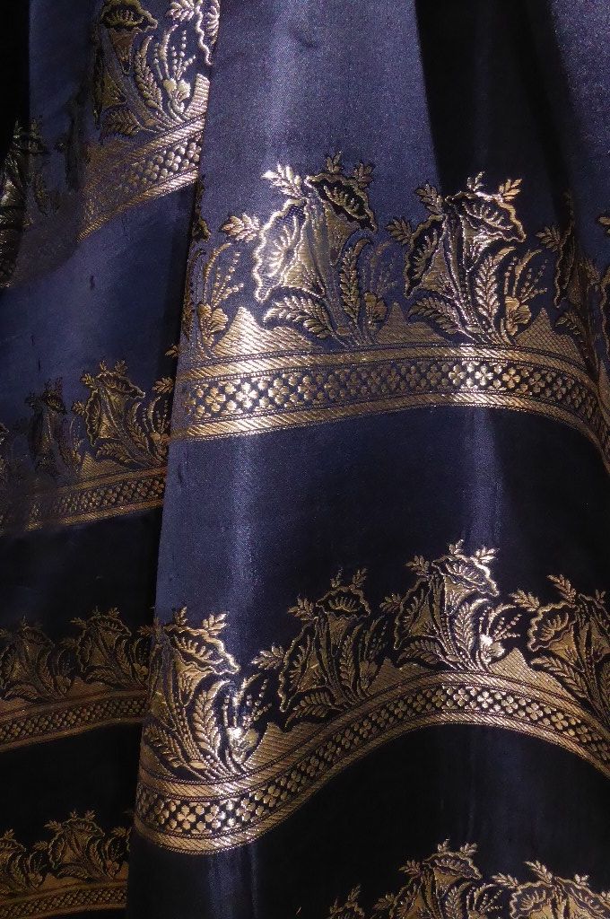 | Material: | Satinseide, 50% Seide (Kettenfaden), 50% Viskose (Schussfaden), Brokat Metall |