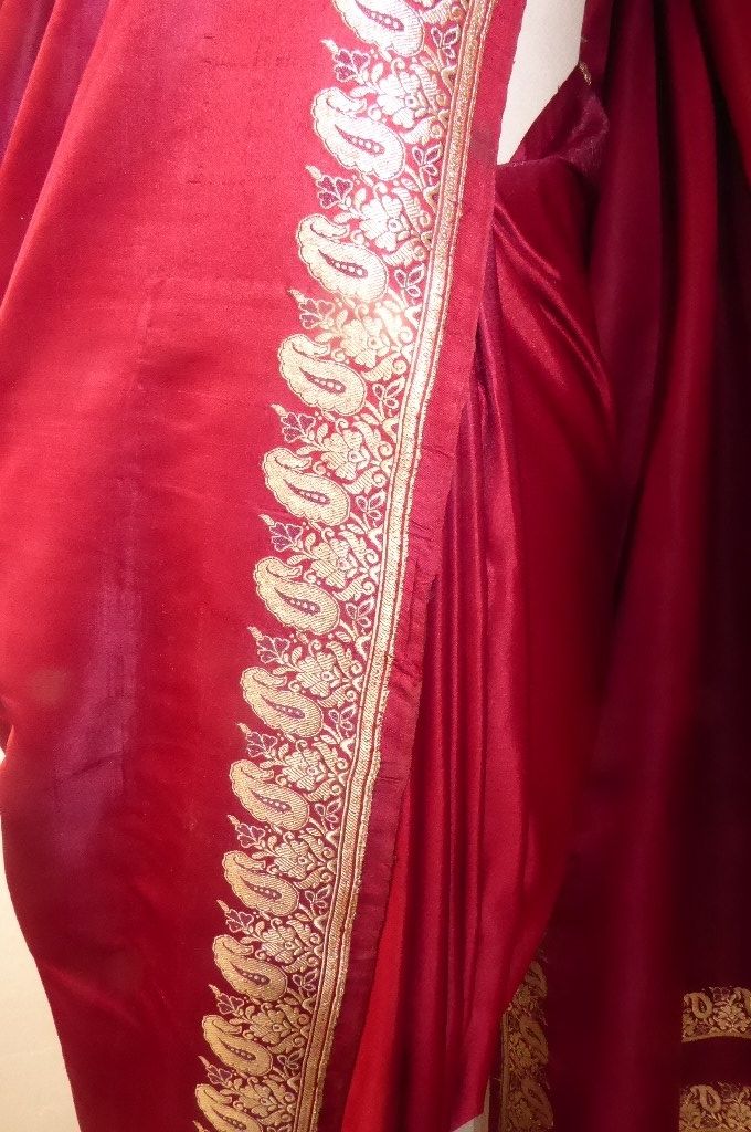 | Material: | Satinseide, 50% Seide (Kettenfaden), 50% Viskose (Schussfaden), Brokat Metall |