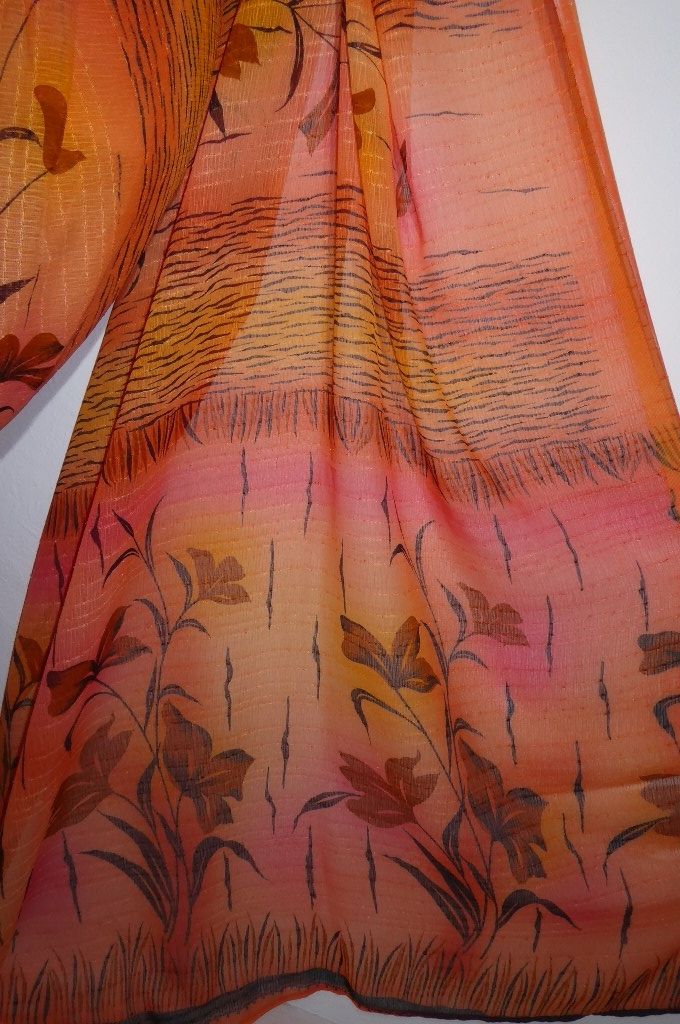 | Verarbeitung: | schwungvolle florale Muster, filigrane gewebte helle Streifen aus Glanz-Viskose |