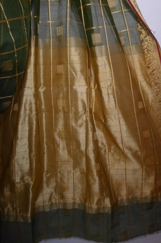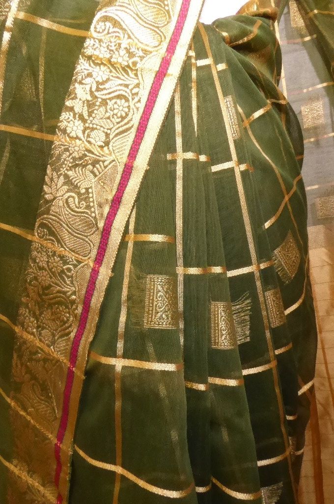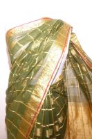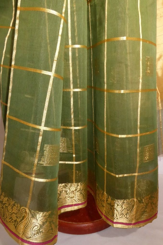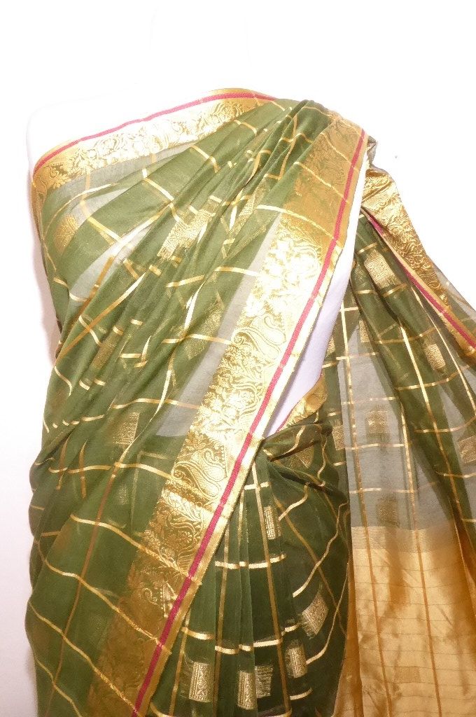 Sari Baumwoll-Mix grün mit gold