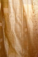 Verarbeitung: gewebte Borte mit Paisley- und Blumenmotiven, ganzflächig gewebte schmale Goldstreifen, die ein Karomuster bilden, ganzflächig in einzelnen Karos filigran gewebte Ornamente