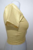 | Verarbeitung: | runder Ausschnitt hinterer Ausschnitt etwas tiefer, Brustabnäher, bequemes Top wegen hohem Elastan-Anteil | |