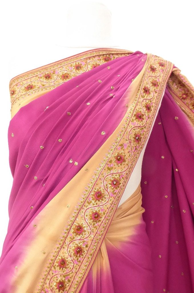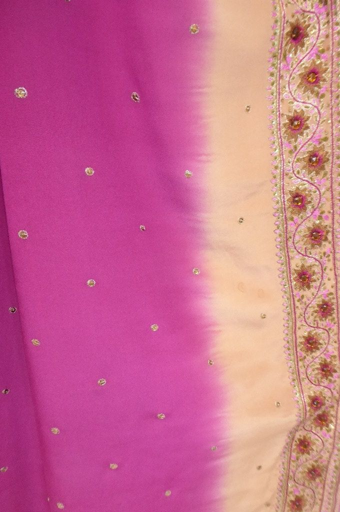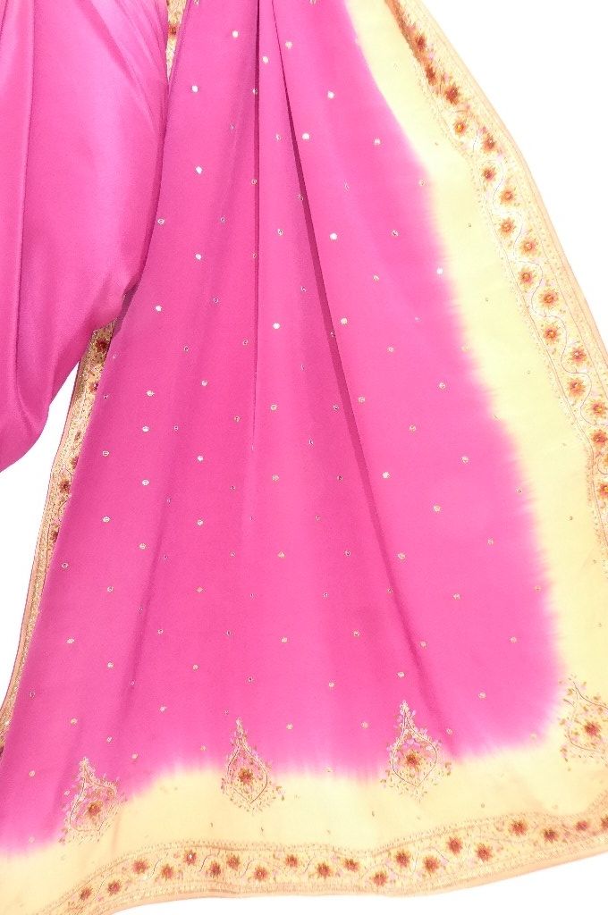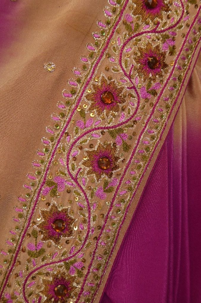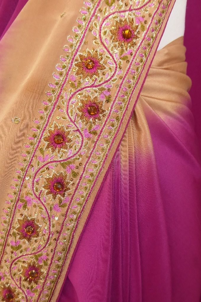 Farbe:magenta (erika), hellbeige, Perlen bernsteinfarben, Stickerei rosa, Pailletten und Brokat hellgold
