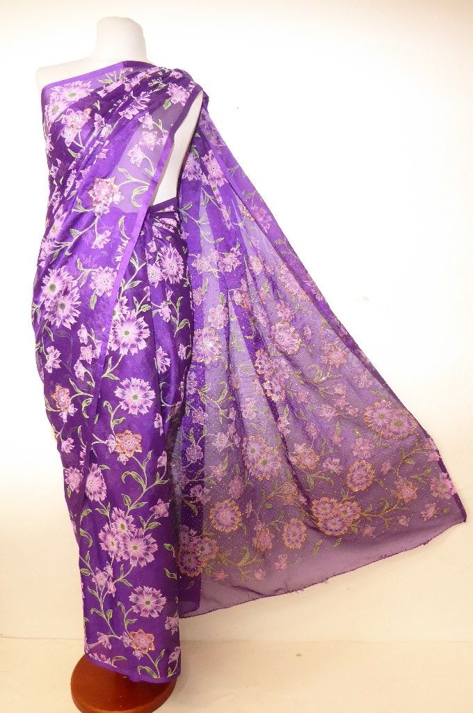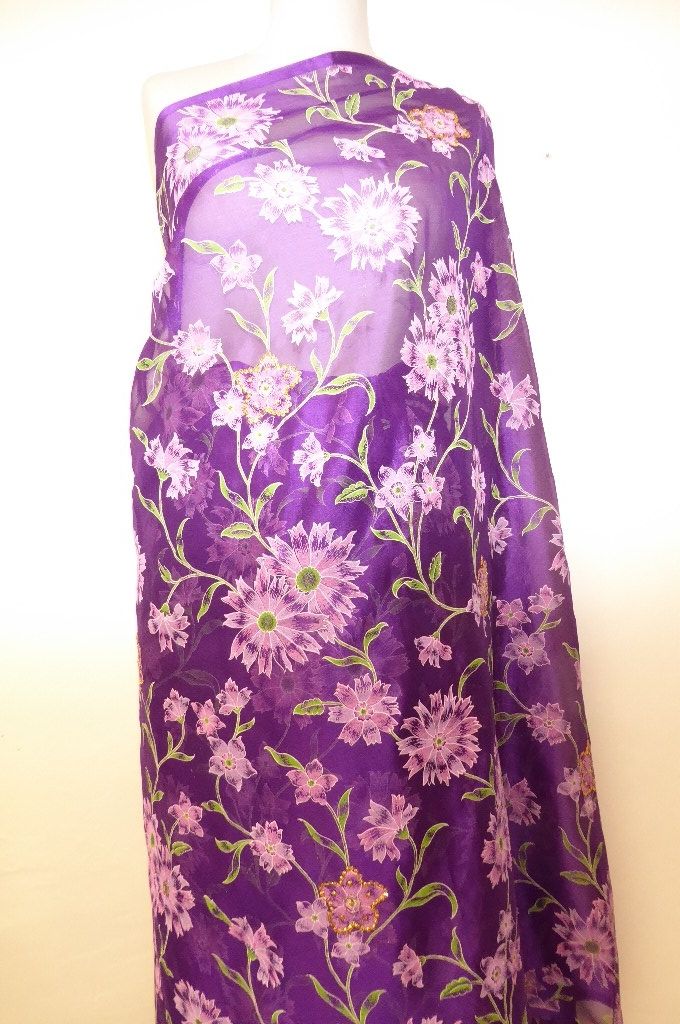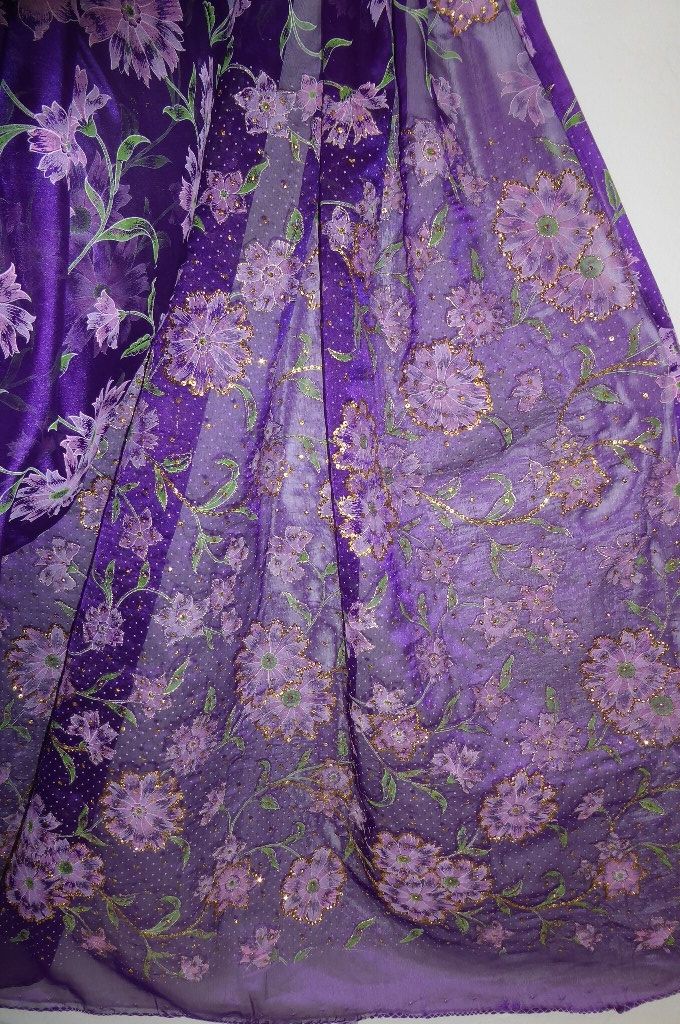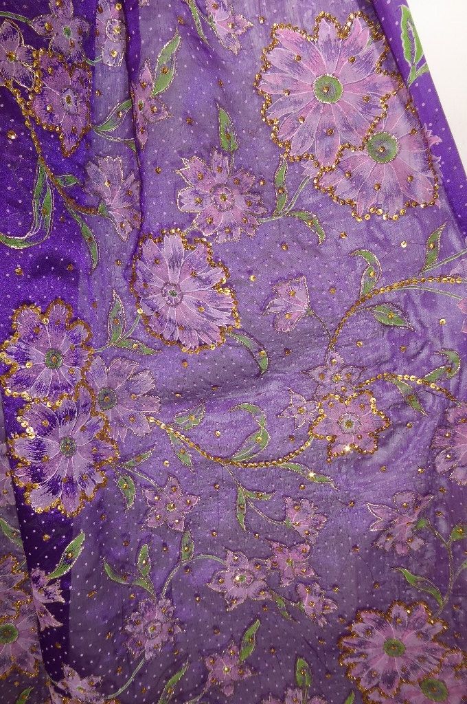 Verarbeitung: | sehr ausdrucksvolles florales Muster, die Blumen sind gemalt und mit Pailletten und Brokat verziert |