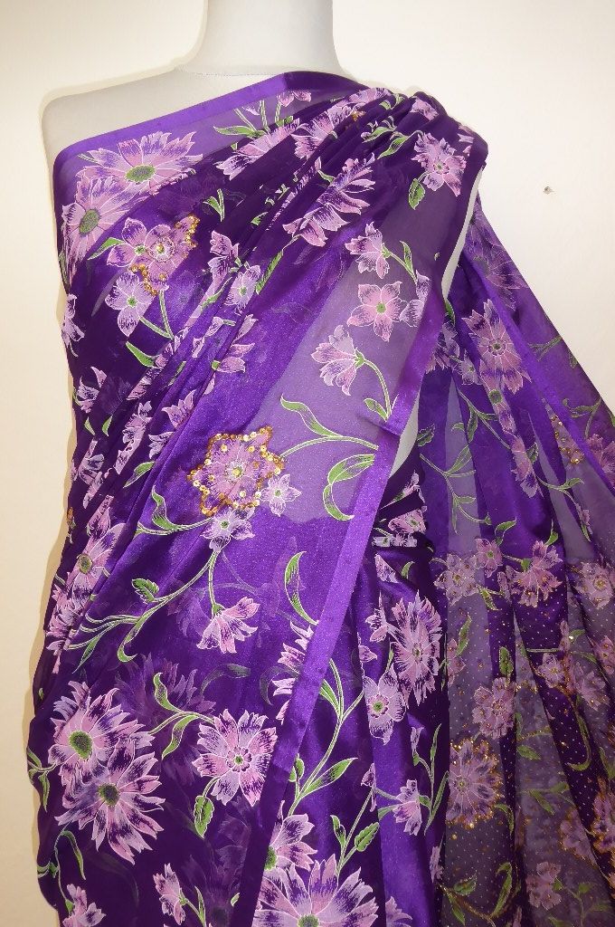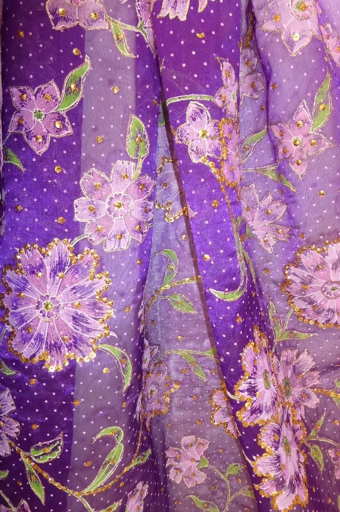 Farbe: | violett, Blumen und Punkte rosa, Blütter grün, Pailletten gold |