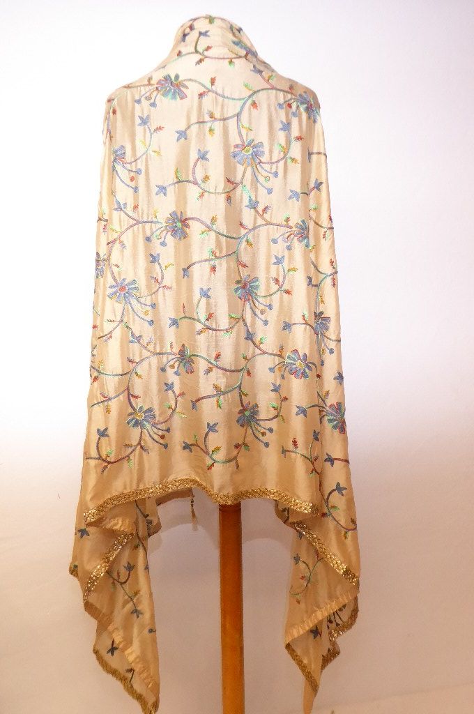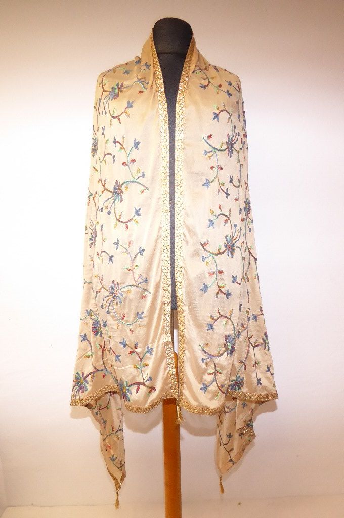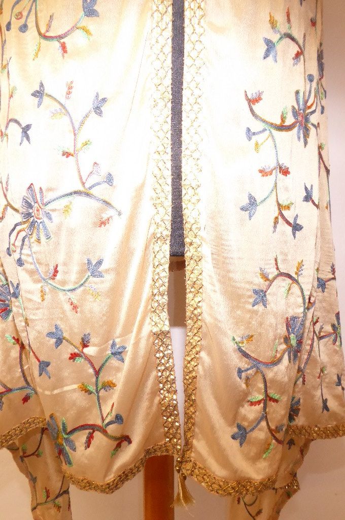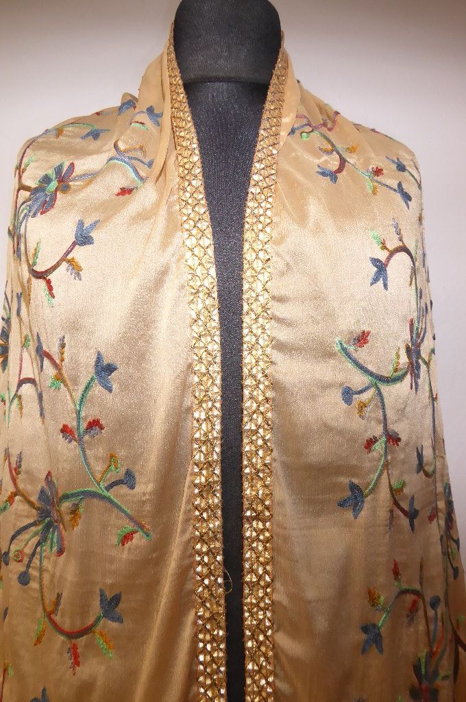 Verarbeitung: | ganzflächig mit floralen Mustern bestickt, bestickte Goldborte an allen vier Seiten |