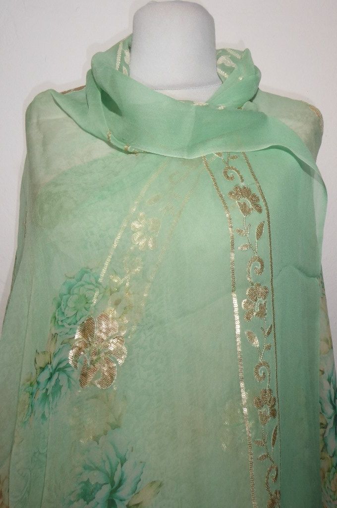 | Farbe: | zarte Farbschattierungen von hellgrün bis creme, Pailletten gold |