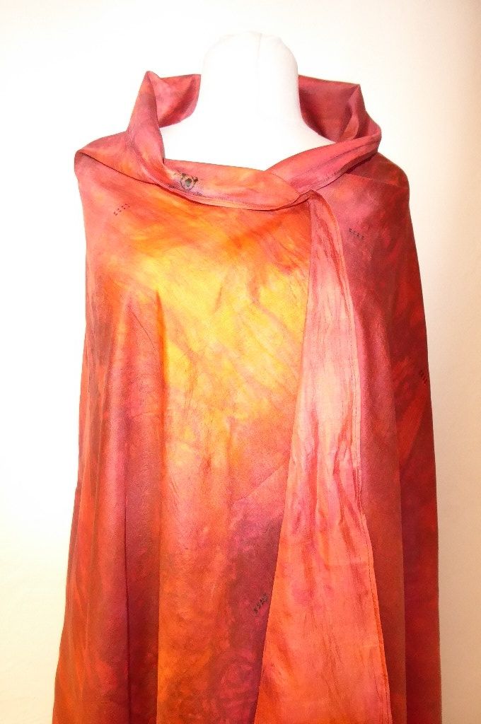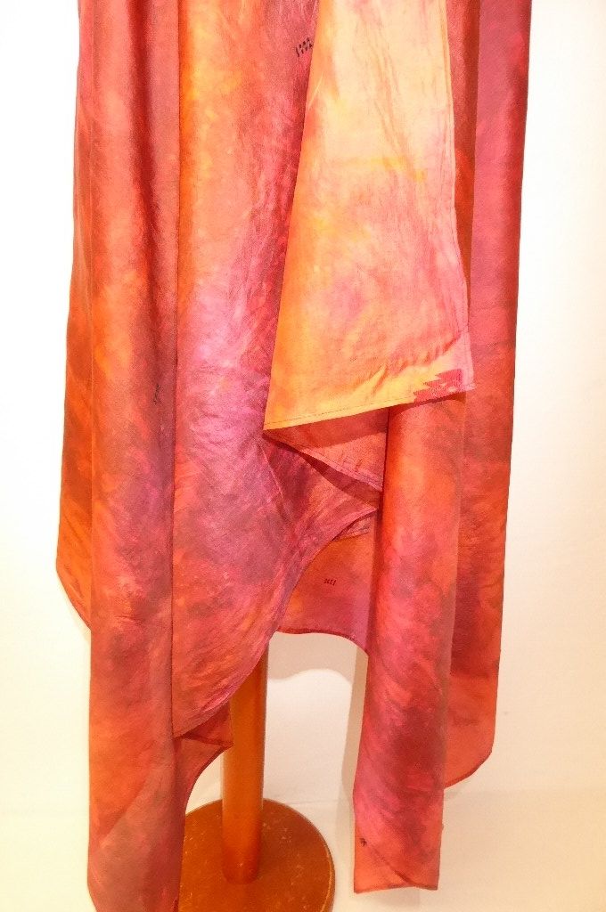 handgebatikt in den Farbschattierungen rot, rotorange, orange, gelborange, blaurot..