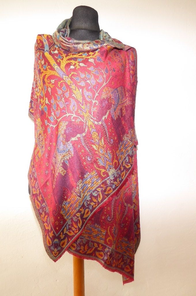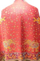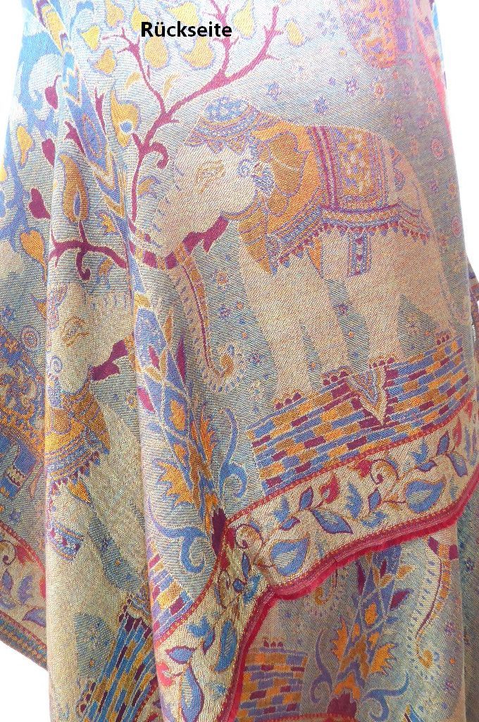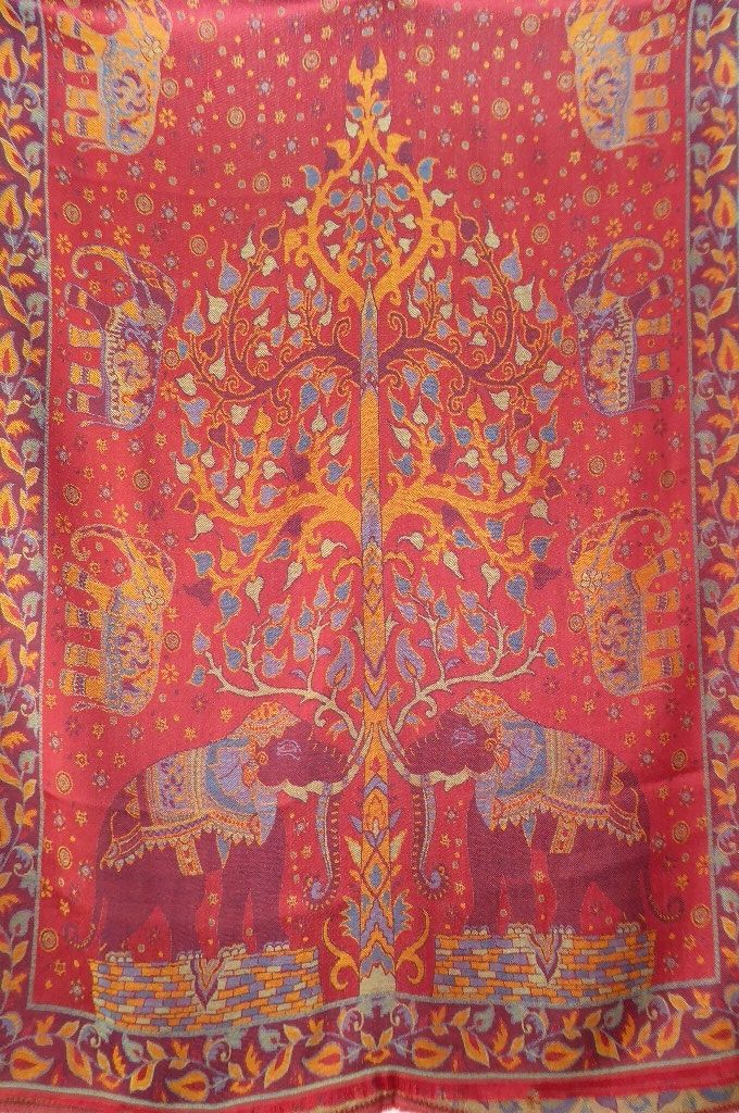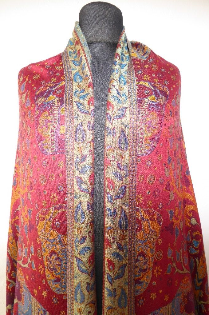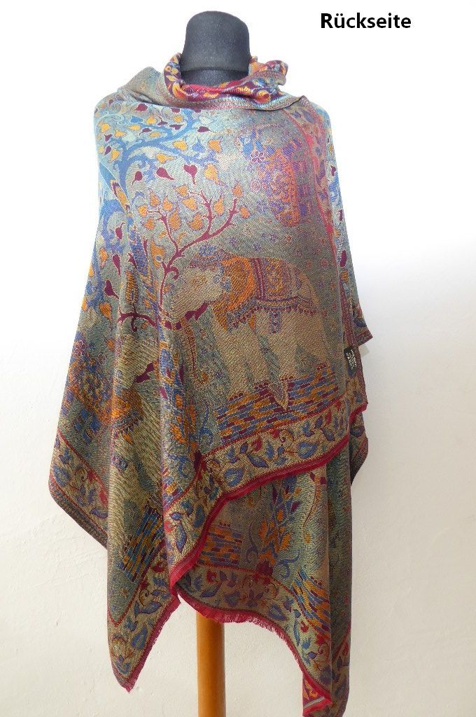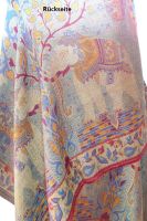 | Verarbeitung: | gewebte klassisch indische Motive wie Elefanten, Lebensbaum und Bordüren, mit Fransen |