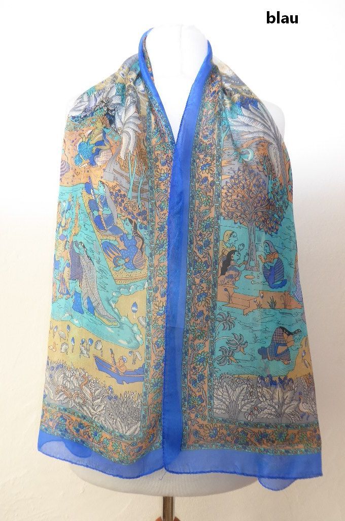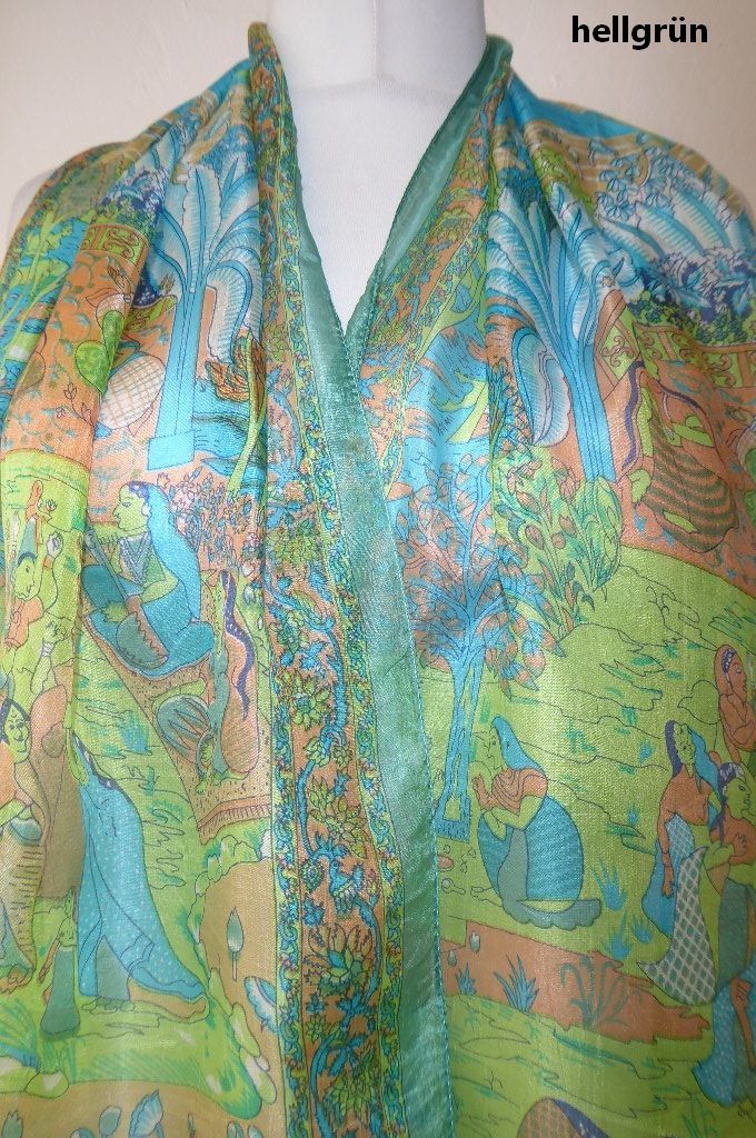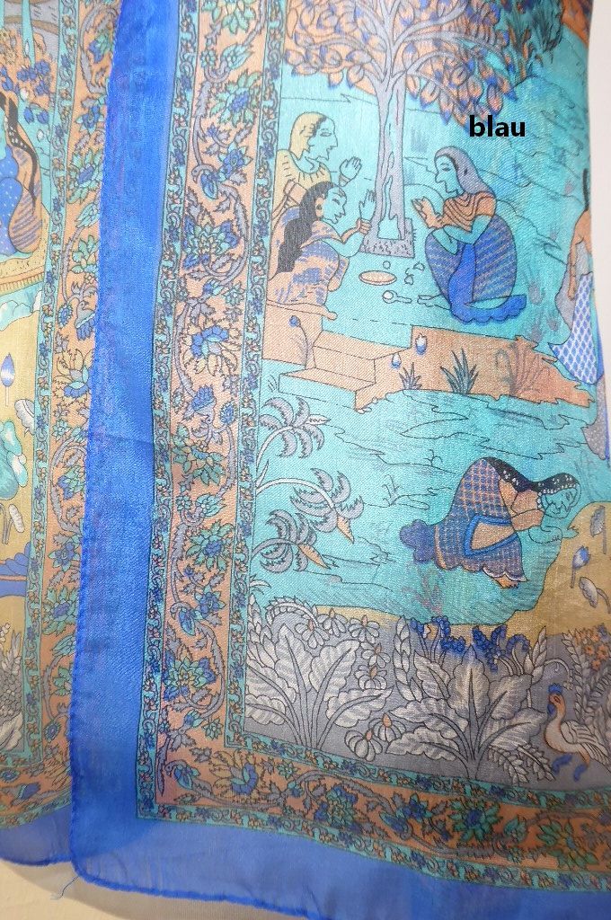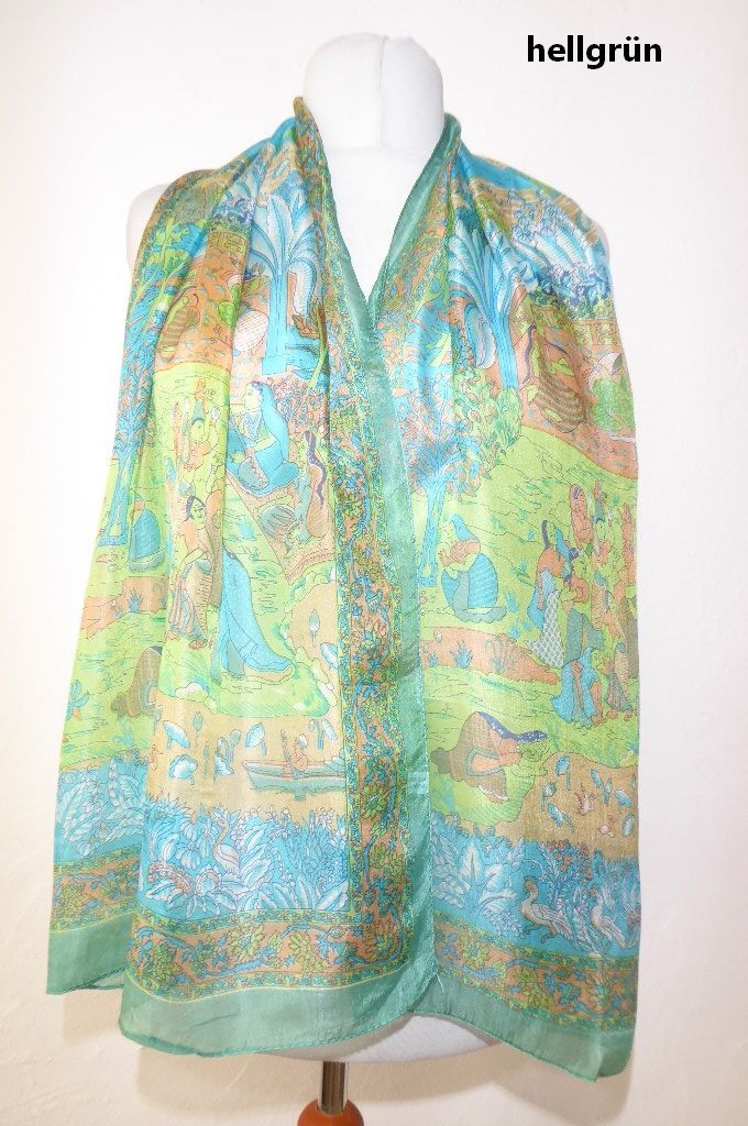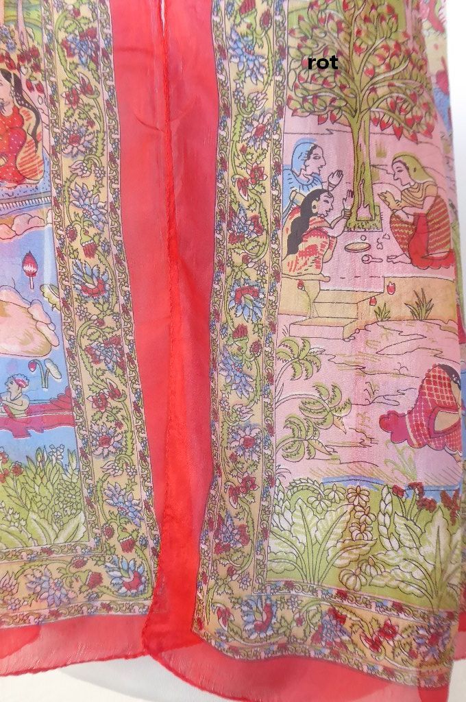 Feine Seidenschals mit den klassischen Motiven Indiens bedruckt