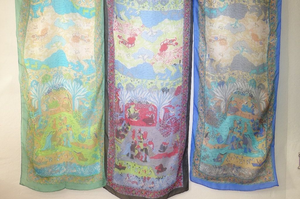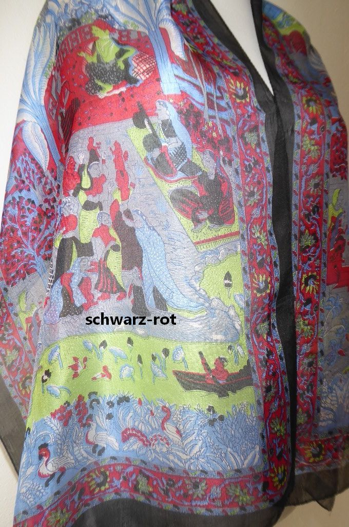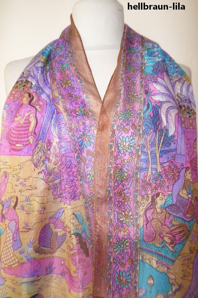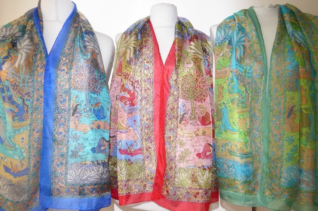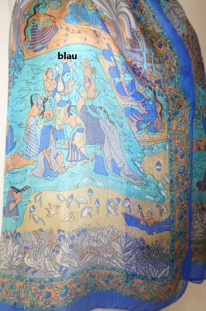 Feine Seidenschals mit den klassischen Motiven Indiens bedruckt