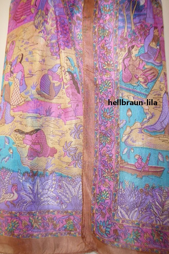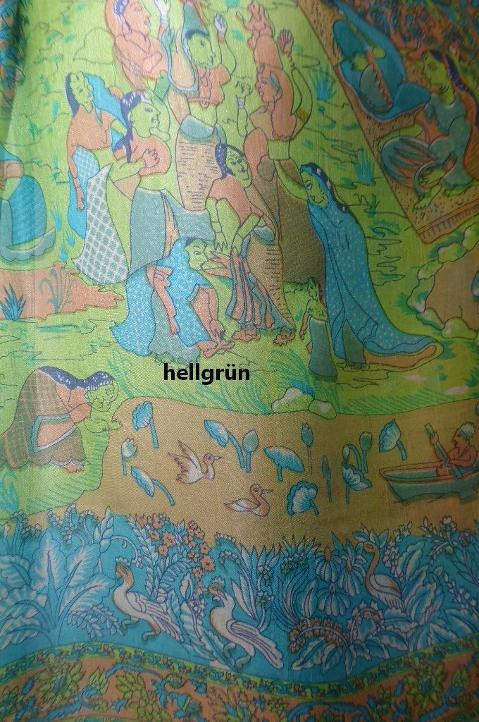 mit schönen Motiven aus dem Leben in einem indischen Dorf bedruckt, sehr fein gesäumt