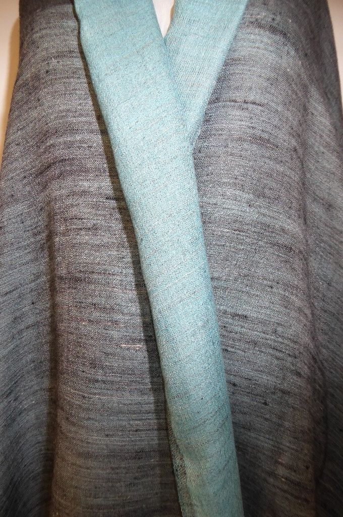 Material: | reine Wolle, sehr fein doppelt gewebt, zweifarbig |