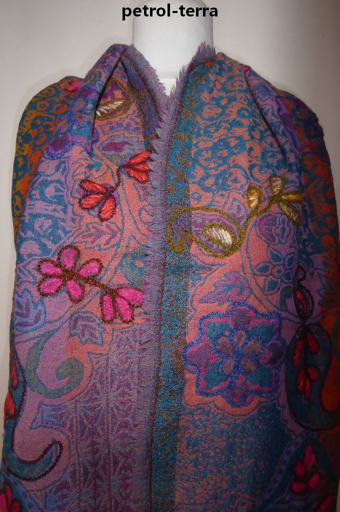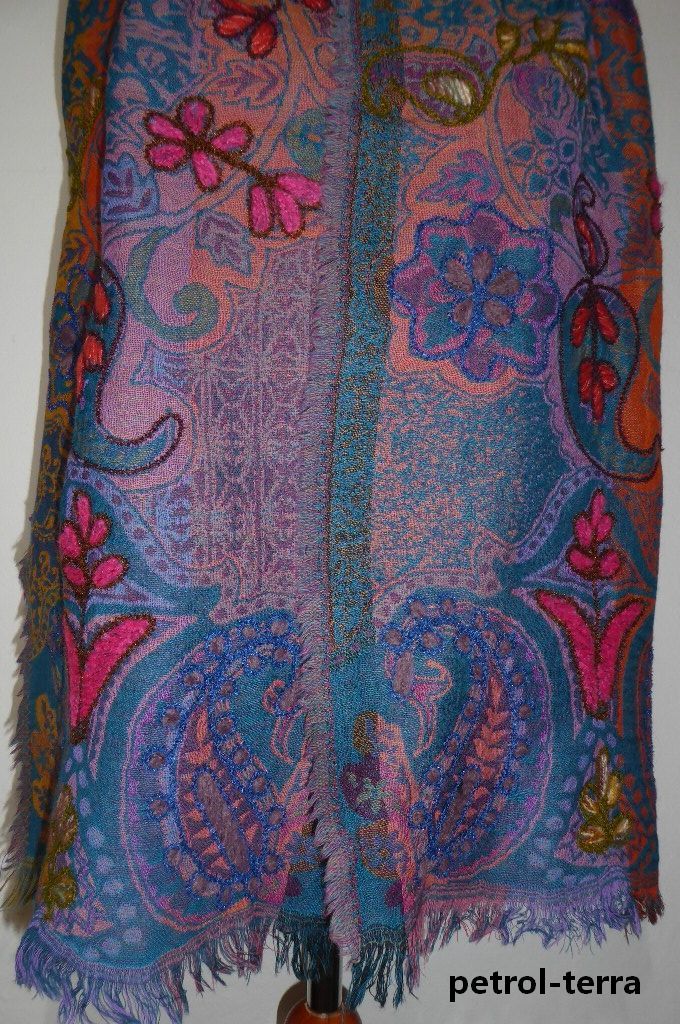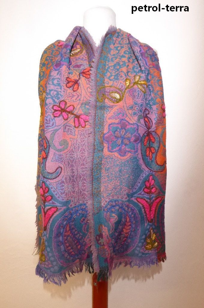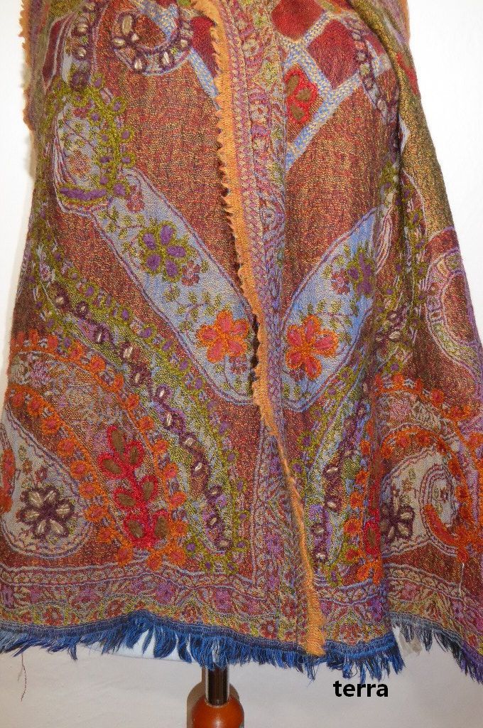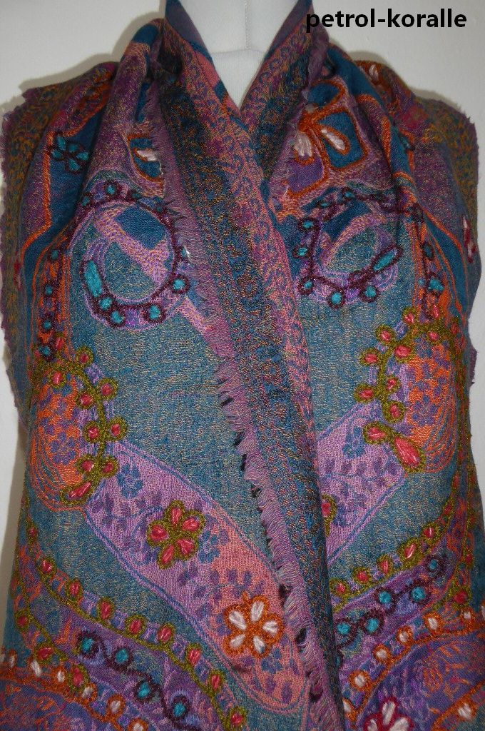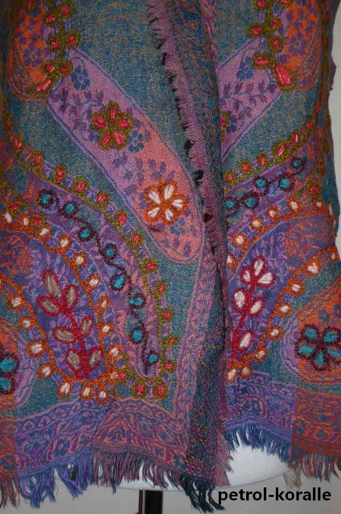 | Verarbeitung: | handgewebt mit unterschiedlichen Farben an Vorder- und Rückseite, mit dicken Wollfäden bestickt |
