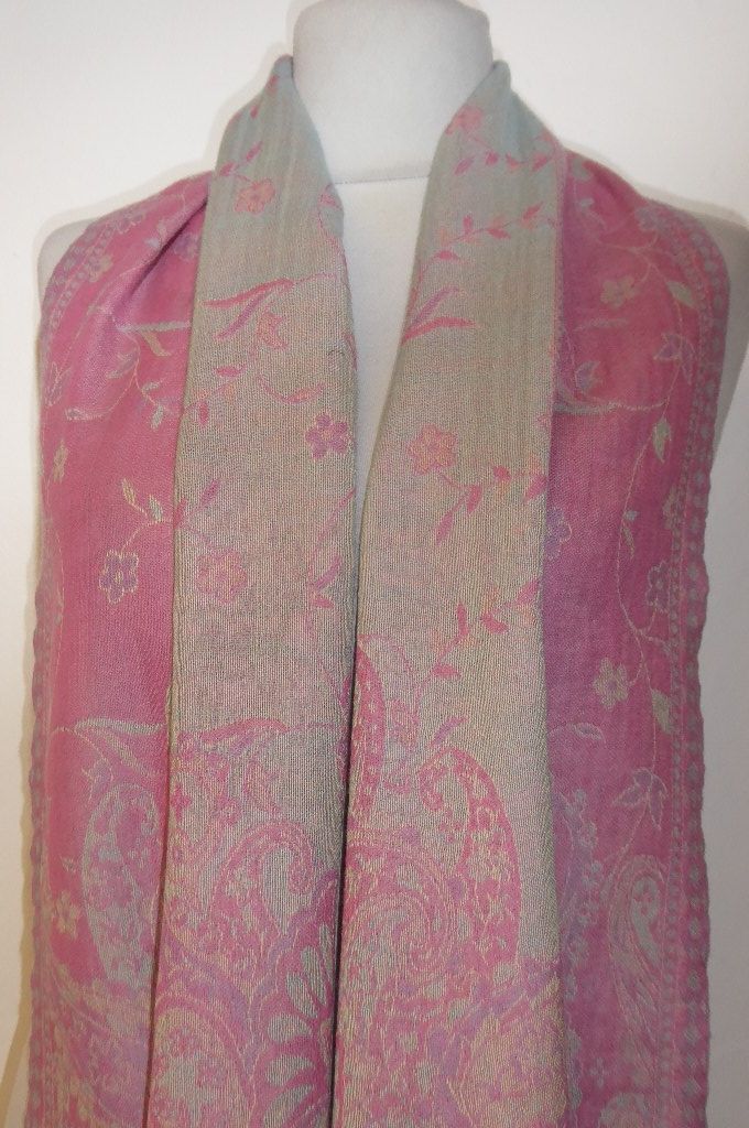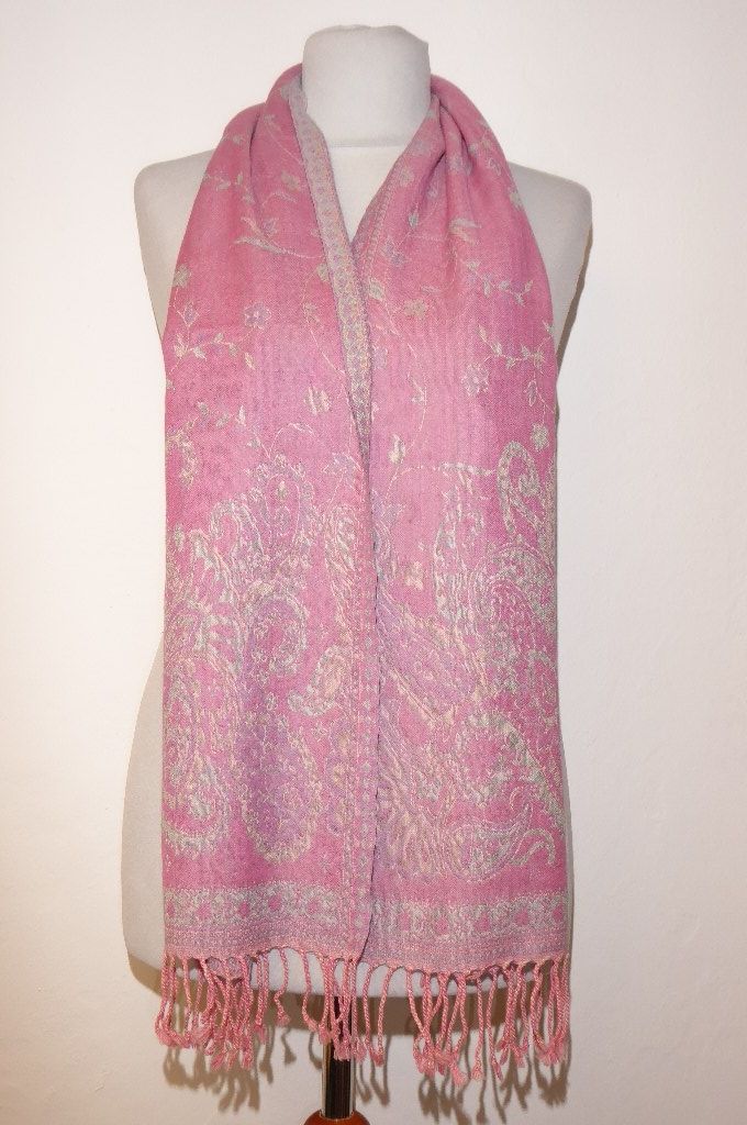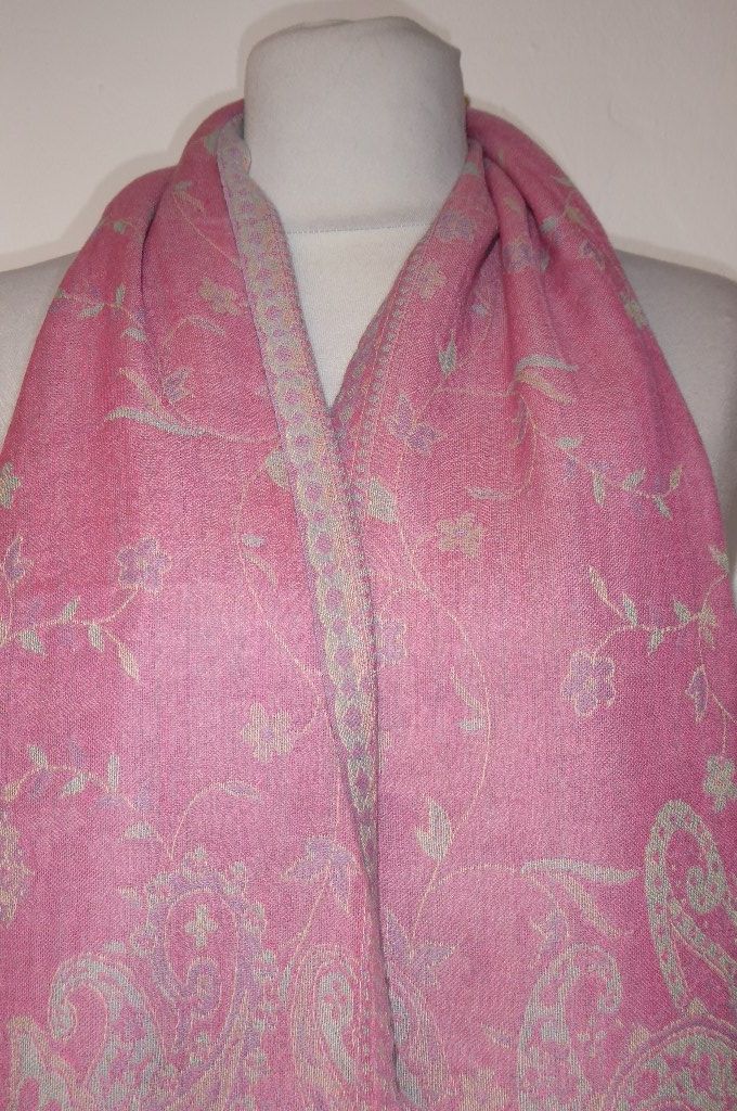 Wollschal Pashmina creme-hellbraun mit Karomuster