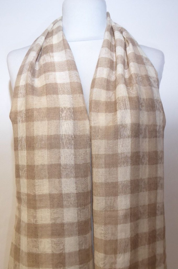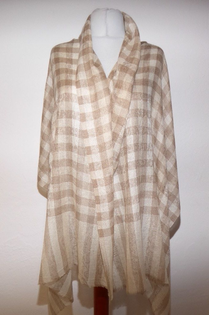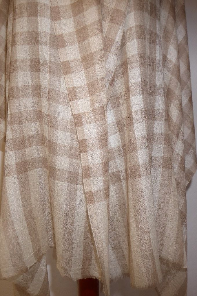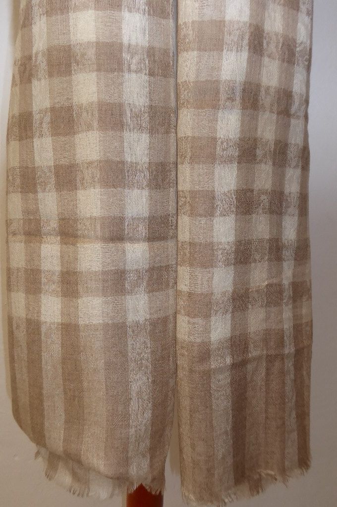Wollschal Pashmina creme-hellbraun mit Karomuster