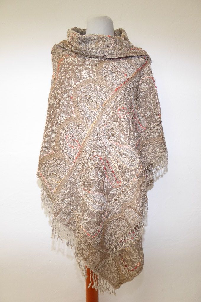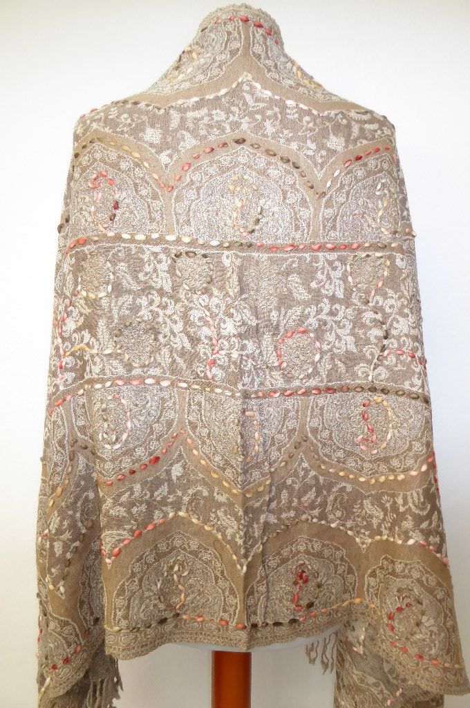 Verarbeitung: handgewebt, mit dicken Wollfäden bestickt, Fransen