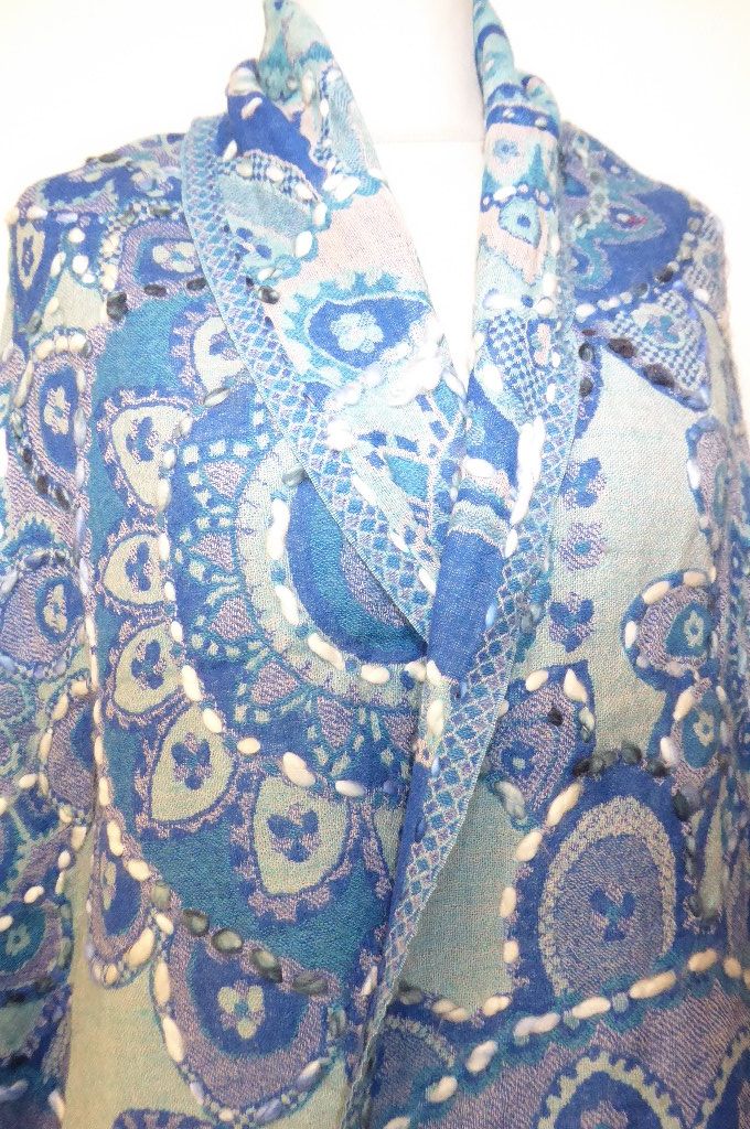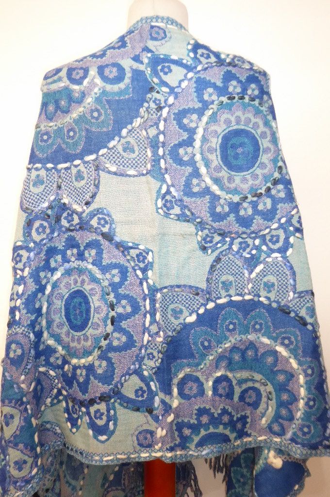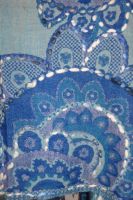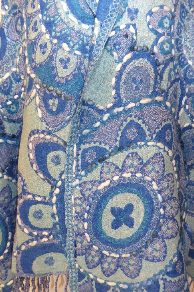 Farbe: | hellblau, blau, Rückseite beige-hellblau, Stickgarn blau und creme |