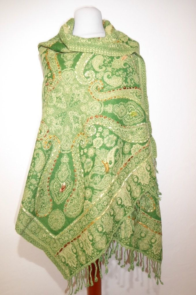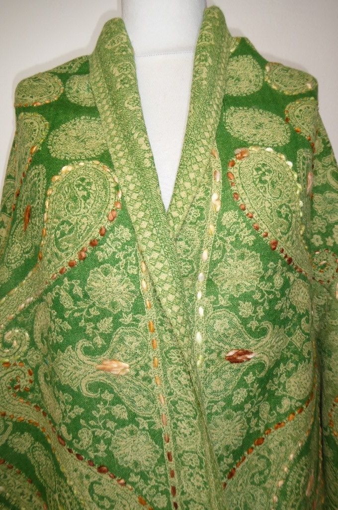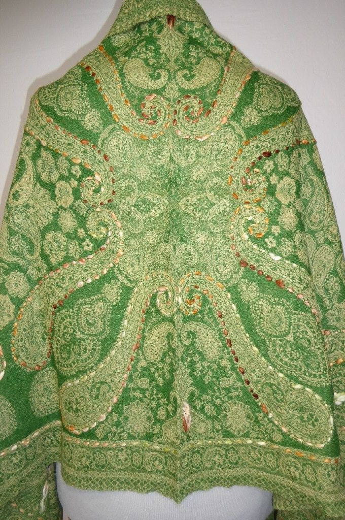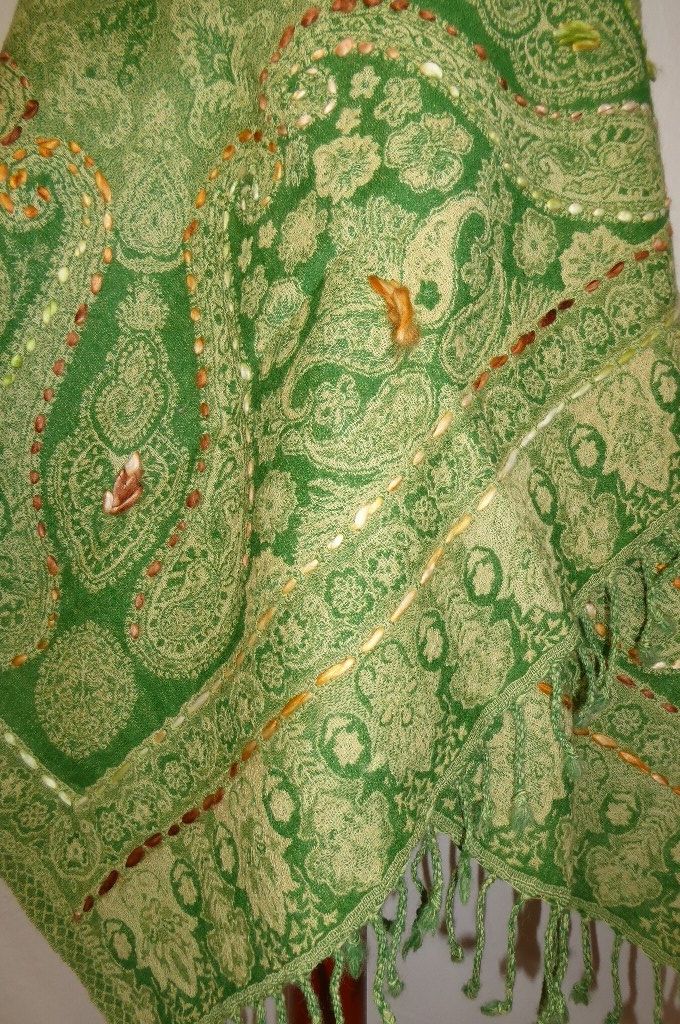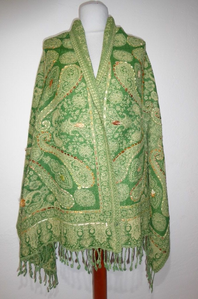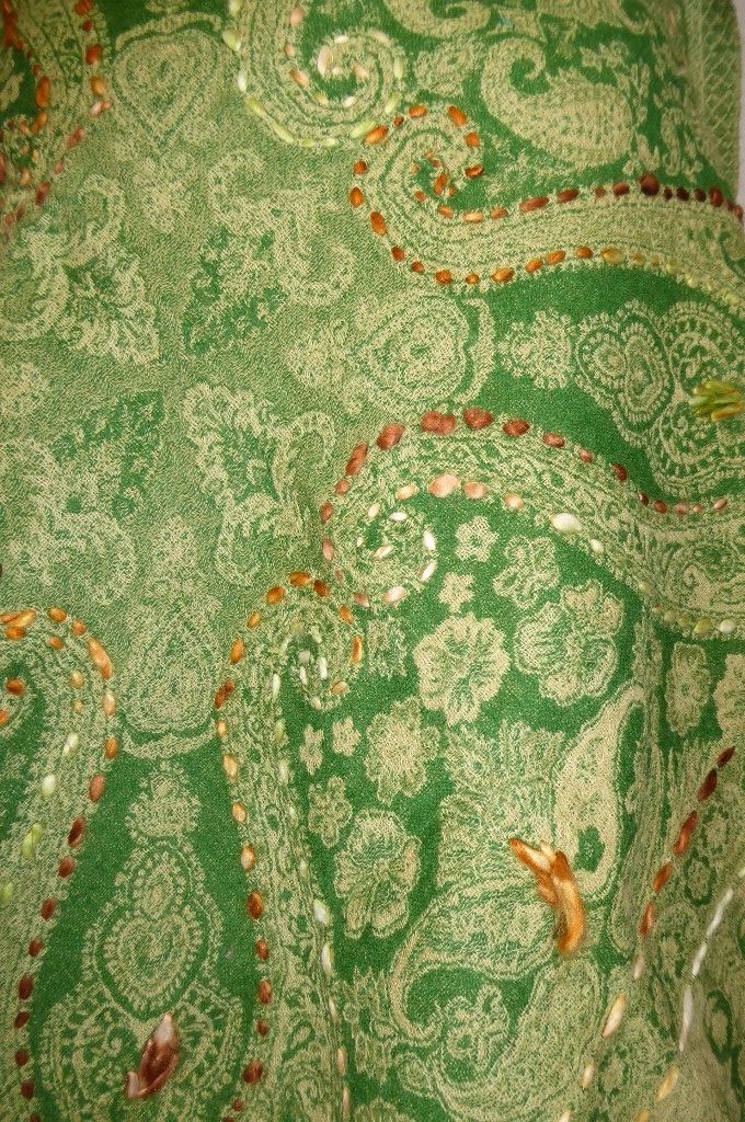 Verarbeitung: handgewebt, mit dicken Wollfäden bestickt, Fransen